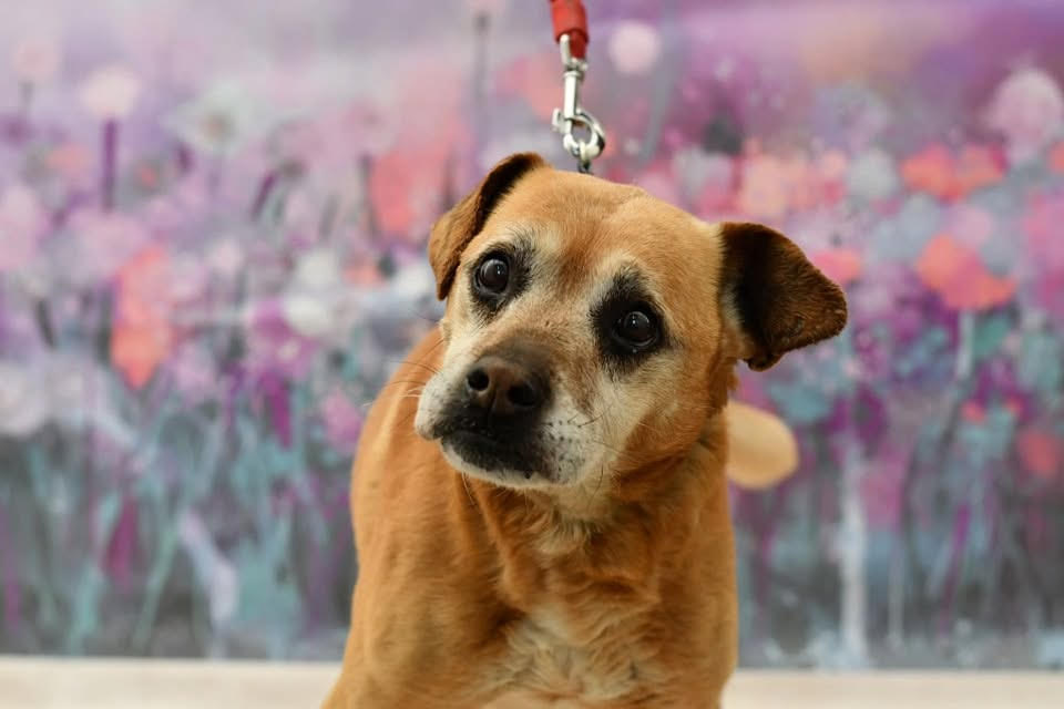 8 lat starszy pies, który pod powiekami ma obrazy ze swojego domu.